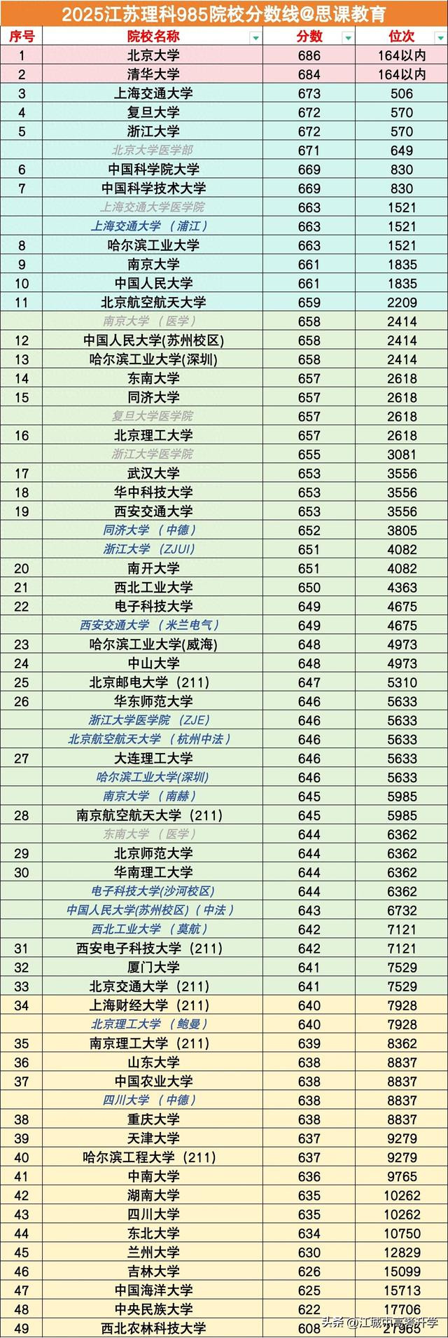 北航659分,哈工深658分,东南大学和同济大学、北京理工都是657分。